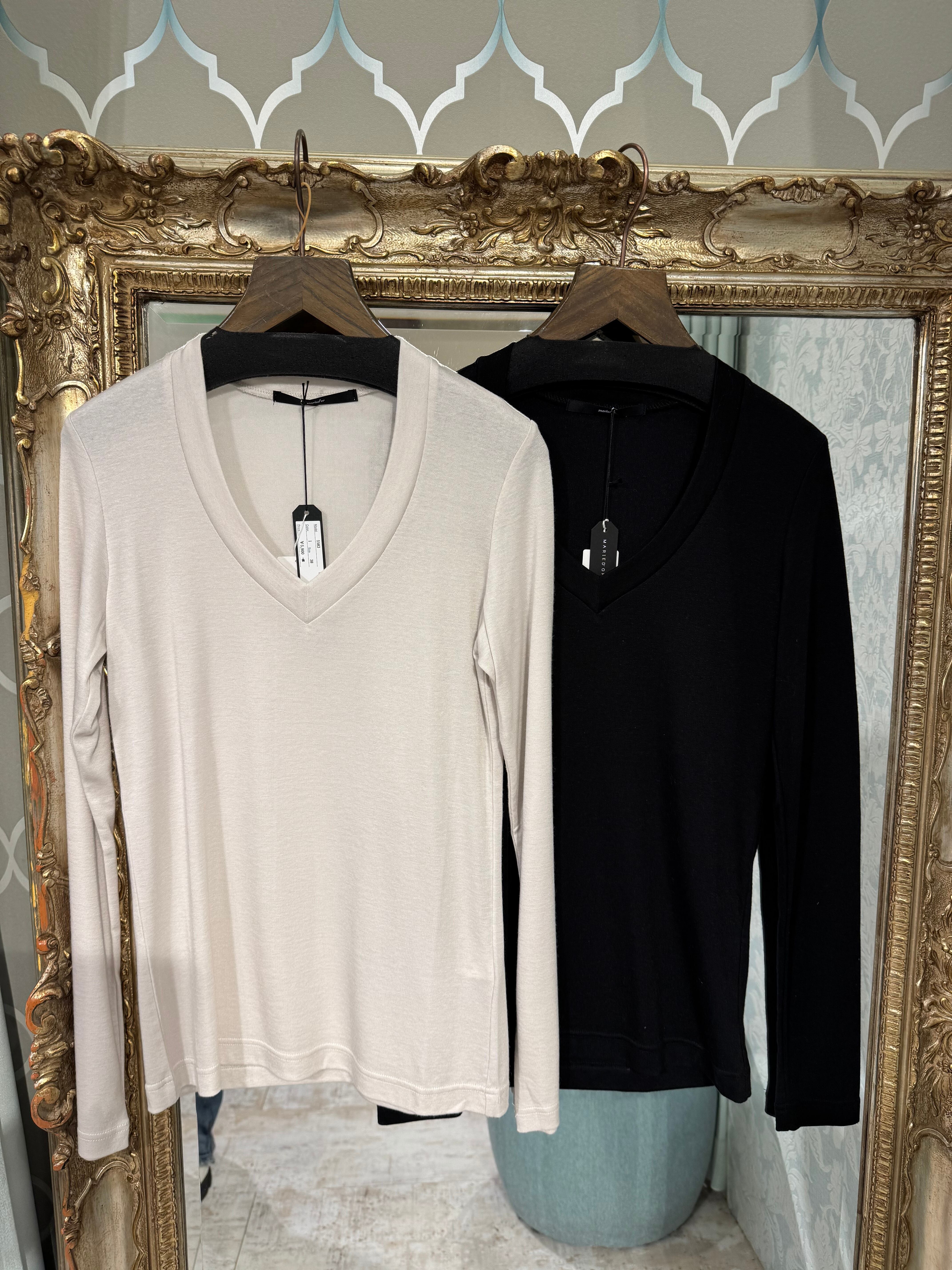 《マリードール》Vネックインナー グレージュ/黒