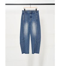 膝に入れたタックで作るユニークなシルエットが特徴のデニムパンツです。