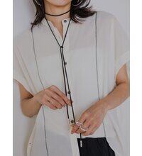 ニュアンス感あるCHIGNONオリジナルパーツを紐先端に施したシンプルなコードチョーカーは長めの紐にしているので、2連にして前に垂らしたり、リボン結びにしたり、後ろで結んだりと色々な結び方が愉しめます。