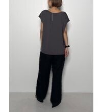 片方の肩を出しても着れる衿ぐり開きで、カジュアルな雰囲気も、ワンショルダーでヌケ感も演出できるフレンチスリーブ