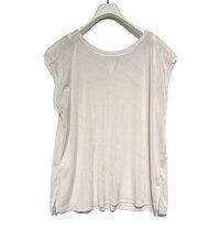 前後2WAY着用可能なノースリーブです。三角あきを前で着用するとより女性らしく、三角あきを後ろで着るとシンプルなデザインになります。全体的にゆったりとしたシルエットです。メッシュ素材は、ベルベットの毛足が特徴的な風合いです。程よく光沢感もあるので、カジュアルでありながらきれいな印象もあるアイテムです。