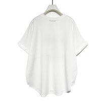 シンプルながらも裏面の微光沢のロールアップスリーブがアクセントとなるプリントTシャツ