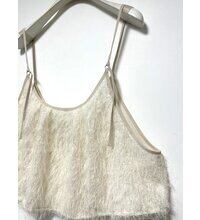 繊細なフェザーの様なフリンジを使用した、ショート丈のキャミソールです。
