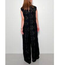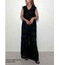ひし形をベースにした上品な総レースのサロペットです。肩部分にタックをいれて少し立体的なシルエットにし、ワイドパンツのシルエットで可愛くなりすぎない、大人なアイテムです。1枚ですっきりと着用しても、秋にはロンTなど合わせてスタ入りイングするなど、コーディネートの巾が広がる1枚です。
