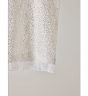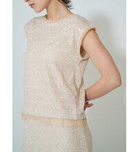 凹凸感のあるストレッチカットソーレースに、箔プリントが施された華やかな素材を使用して、袖口と裾に軽やかなシアーチュールをドッキングさせています。