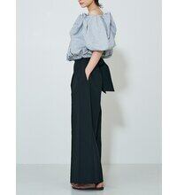 バックスタイルの大きめリボンがポイントになったピンタックワイドパンツ。