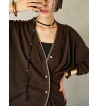 柔らかなスウェット地にメタルビーズが等間隔であしらわれたカジュアルなソフトチョーカーは、着けるだけでいつものコーディネートにアクセントを加えてくれます。ソフトな肌触りの幅広コードとエレガントなメタルビーズの組み合わせはTシャツなどのシンプルコーデはもちろん、ジャケットスタイル等にもぴったりなチョーカーです。コードの長さを140cmと長めにしているので色々な結び方やアレンジを楽しめます。また、結んだ髪にぐるぐると巻き付けてヘアアレンジアイテムとして使用しても◎