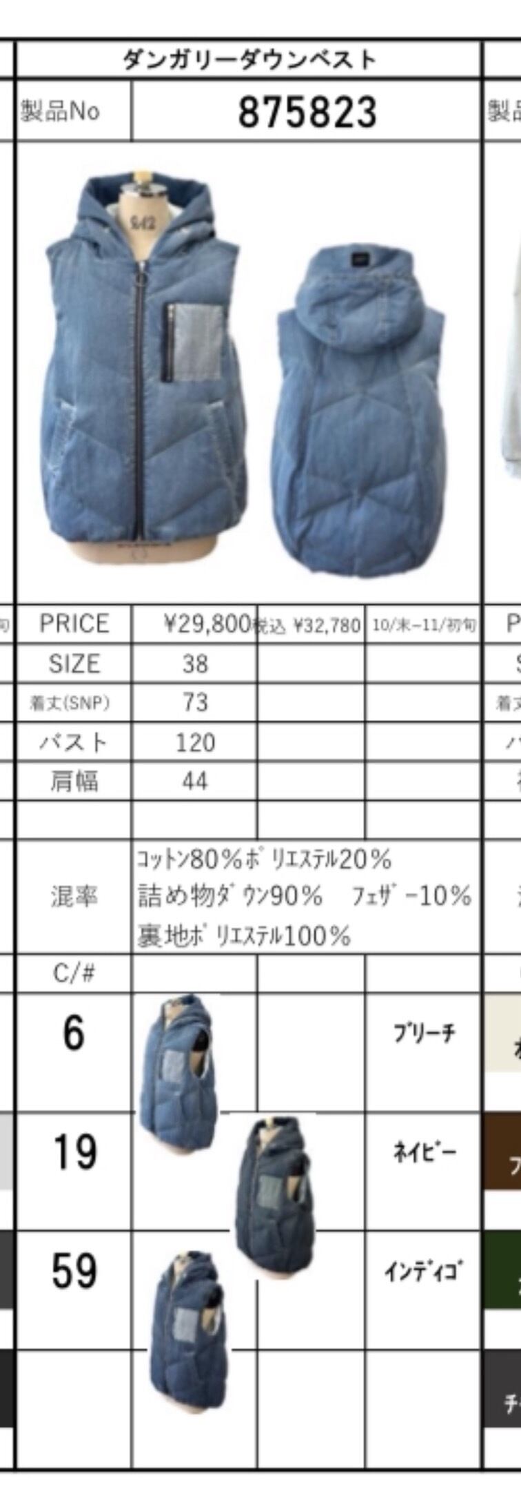 【ご予約品】《ayane》ダンガリーダウンベスト 875823 10末予定【送料無料】