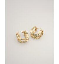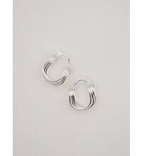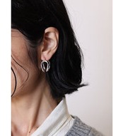 華奢な3本線で描かれたカーブラインピアスは軽やかさを感じさせる抜け感と360度どこから見ても立体感のあるデザインになっております。カチッと留めるワンタッチタイプのピアスなのでキャッチを無くす心配もなくストレスフリーに着用が可能です。ピアスポストはヴィンテージ風の山型にカーブしたポストを採用しているので高見え効果も◎丁度いいサイズ感とシンプルなデザインで幅広いジャンルのコーデにマッチする上品なピアスとなっております。