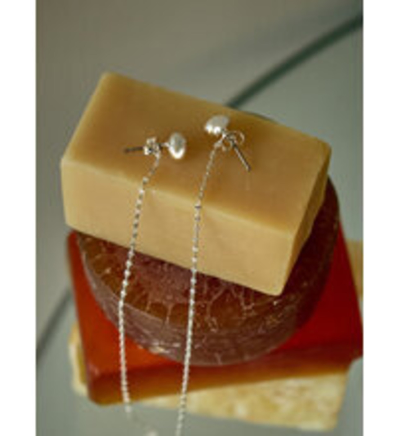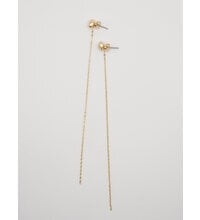 少しいびつでコロンとした卵型ピアスと、きらっと上品に揺れる繊細なチェーンの組み合わせが目を惹くロングチェーンピアスはシンプルなのに存在感抜群!長めのチェーンがポイントで、さっと着けるだけで顔周りがぱっと華やかな印象に。2WAY仕様となっておりますので、卵型ピアス単体でつけたり、片耳だけチェーンをつけたり、お手持ちのピアスにチェーン着けたりとをつけたりと様々な着け方を愉しめます。シンプルなコーディネートはもちろん、ちょっと特別なおでかけにもおすすめなアイテムです。背面には「CHIGNON」の刻印入り。