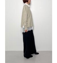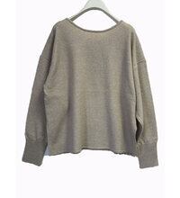 すっきりとした衿ぐりは、後がV空きになっており、前後で違った裾リブもポイントで、前後2WAYで着用できます。
