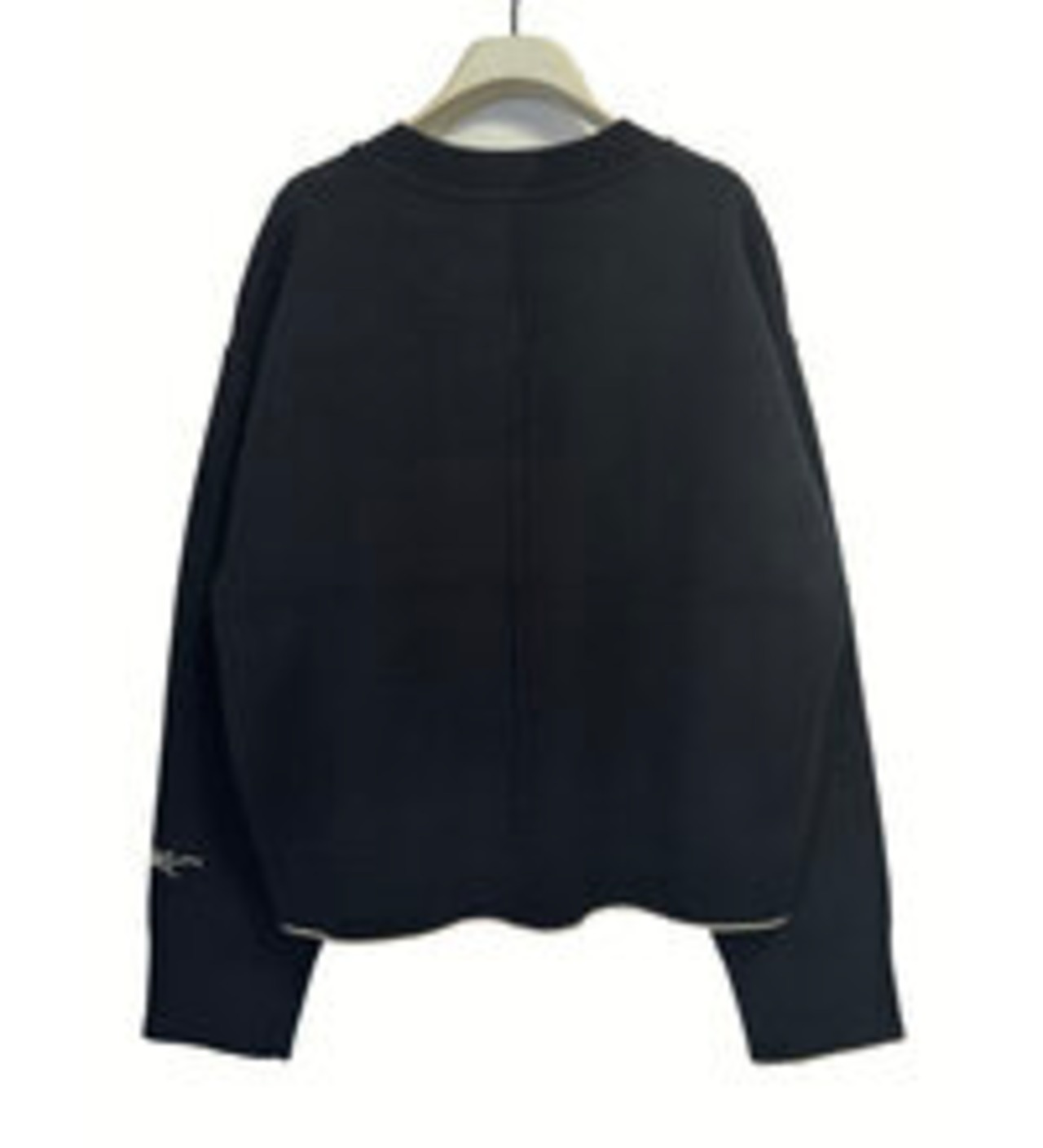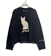 しっかりと厚みのあるジャガード編み地とフロントに大きくイラストされた猫が愛らしいキャッチーなニットPO。