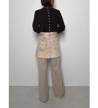 同じ素材のパンツと重ねての着用はもちろん、単品でも1枚プラスすることで、旬なスタイリングが楽しめる+1アイテムになっています。
