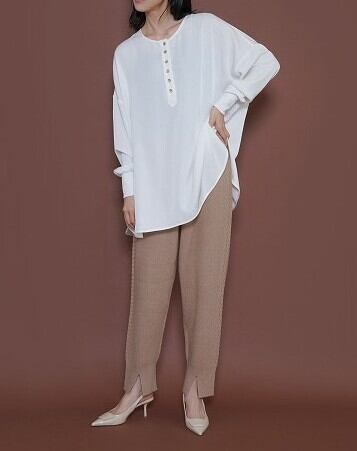 【ご予約品】《CYAN》グロッシーヘンリーリブブラウス [507394]【送料無料】