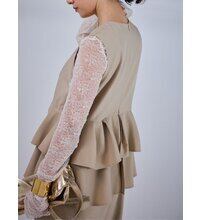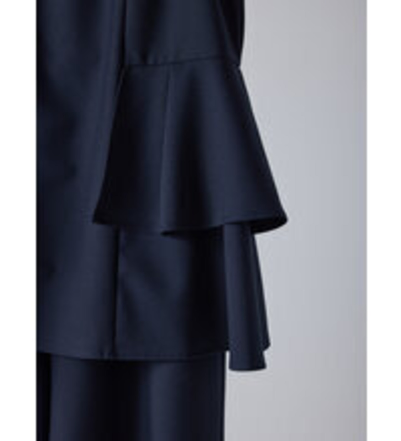 二段仕立てのペプラムはタックやフレアを巧みに使い分けて立体的な作りに。