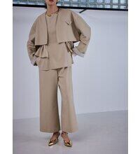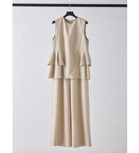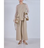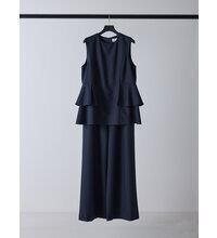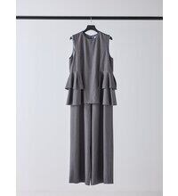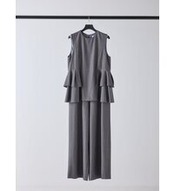 ペプラム切り替えのトップスとワイドパンツを組み合わせたような、着るだけでスタイリングが完成するコンビネゾン。