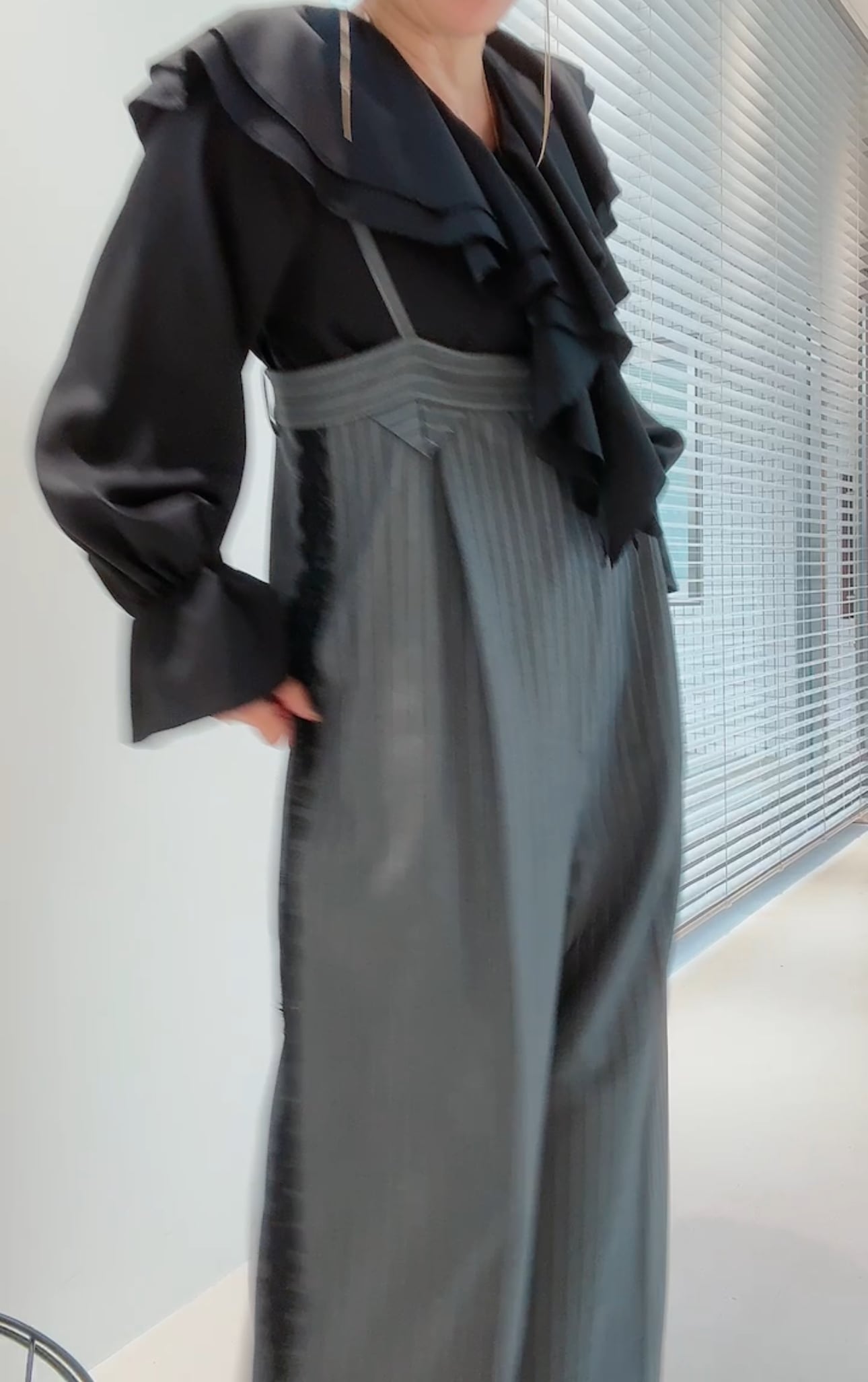 シンプルなインナーを合わせればこなれたデイリーに、ラッフルブラウスで格上げすればディナーにも対応。