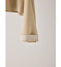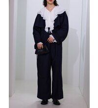 ワイドスリーブの袖口を折り返すとレースが覗く仕様で、ほんのりフェミニンなスパイスを。