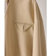 胸元の三角フラップが、シンプルな装いにモードな表情をプラス。