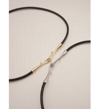 本革紐にオリジナルのデザインフックを組み合わせ、ミルマルで洗練されたシンプルチョーカー。シンプルだけど存在感のある大人チョーカーはいつものコーデにアクセントを加えてくれます。デザインフックとなっていますので、フック部分を前にしても◎少し短めの長さになっていますので、Tシャツやブラウスなどの首が詰まった洋服との相性も良く、お手持ちのネックレスとレイヤー使いするのもおすすめです。