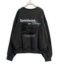 モダンとクラシックを組み合わせた文字とヴィンテージ調の写真がポイントの両面ロゴスウェット。