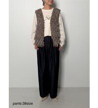 チュールレースとニット風カットソーをドッキングさせたベストです。