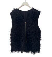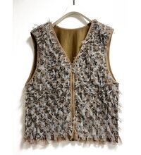 甘くなりやすいリボンチュールを逆開ファスナーで辛さを足して、大人も着やすいベストに仕上げました。