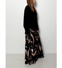 手書き風の大判な抽象柄が目を引く、サテンバイアススカートです。