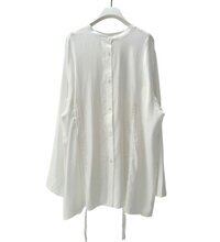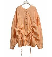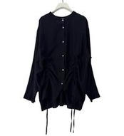 前身頃の二本ドロストで前側の着丈調節ができます。袖口にはシャーリングゴムを入れてブラウジングできるデザインにしています。