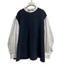 ボディ部分はすっきりと上品に、ホワイトの袖はふんわりとしたボリュームシルエットで、メリハリのあるスタイルを演出します。