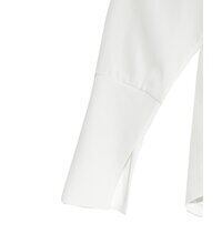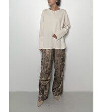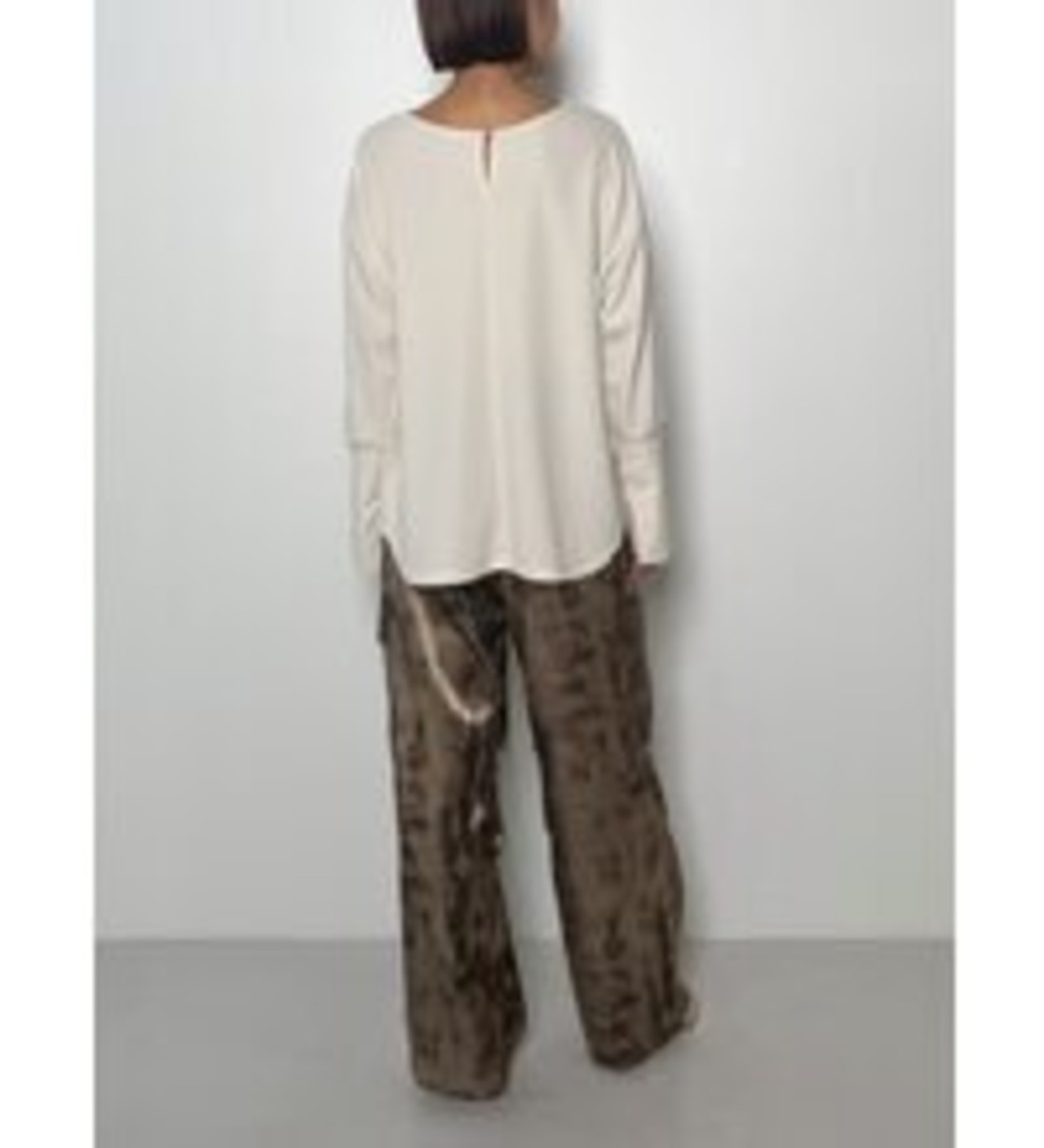 スリットデザインが施された長めのカフスデザインは、シンプルながら着こなしのポイントになります。後ろネックに付けた、ゴールドの華奢なバーボタンもアクセントになっています。