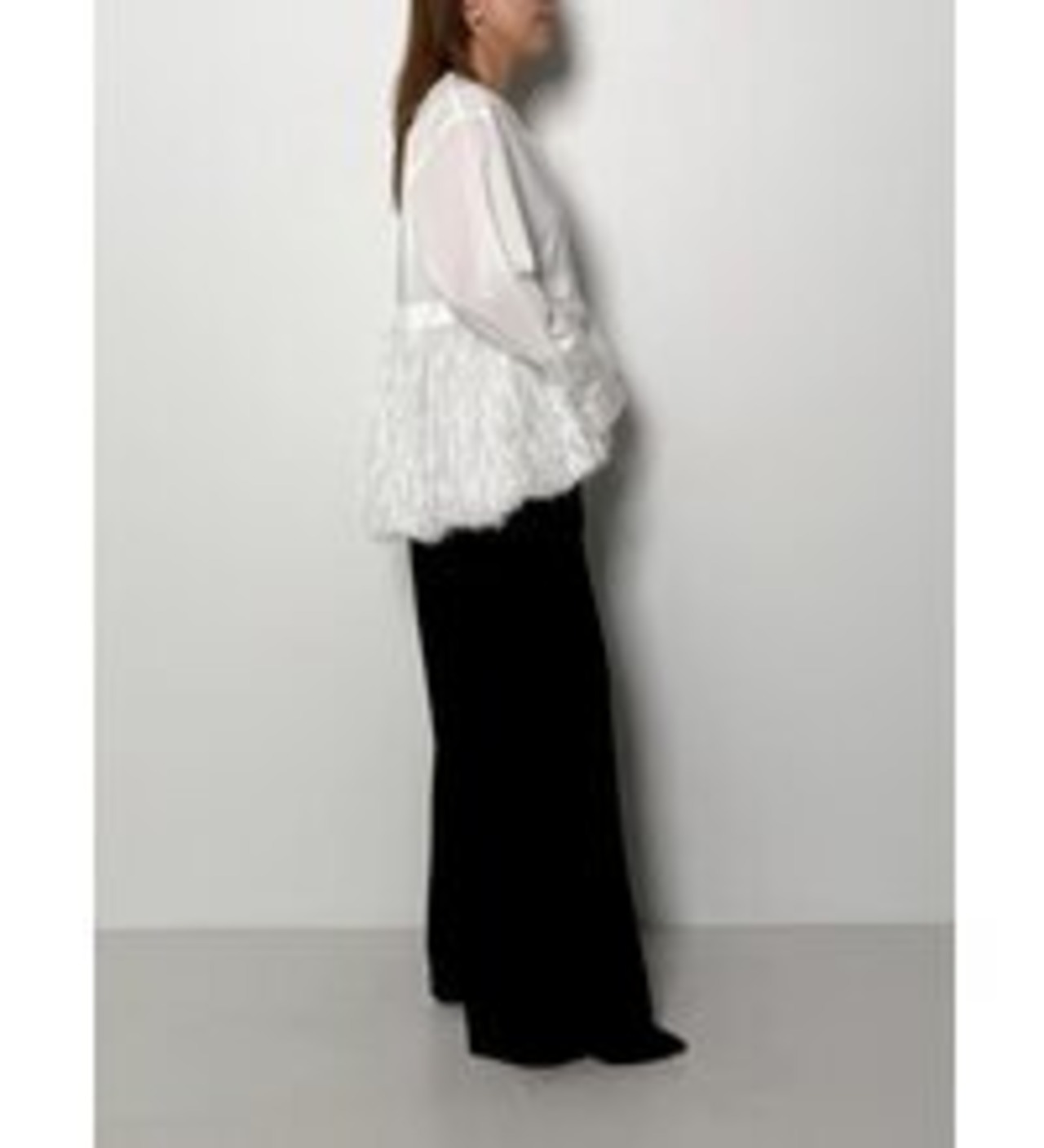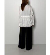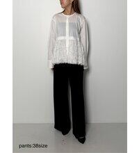 毛足のあるファー素材を裾に切り替えた、華やかなデザインシャツ。