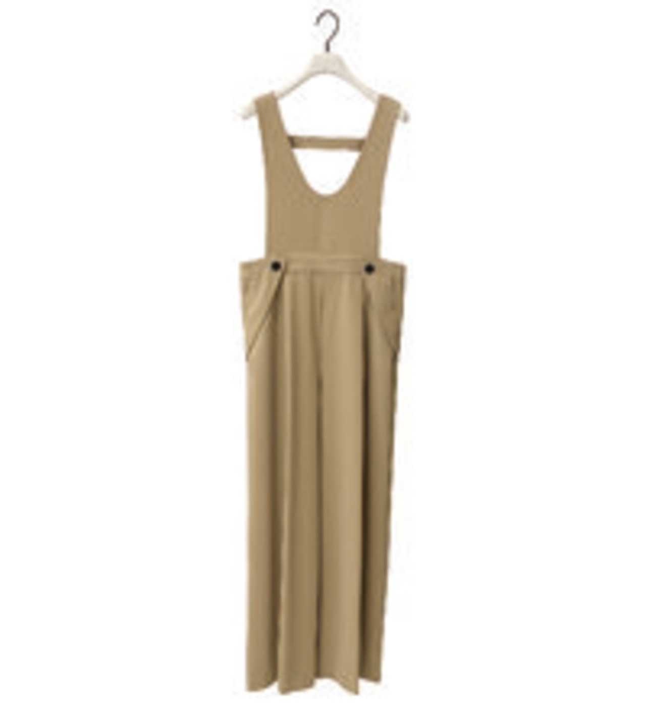 フロントのポケットとボタンデザインがポイントの大人サロペット。