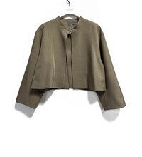 ショート丈のスタンドジャケットはスタンドカラーで少しマニッシュな印象にしつつ、後に大胆にいれたスリットで抜け感をプラス。