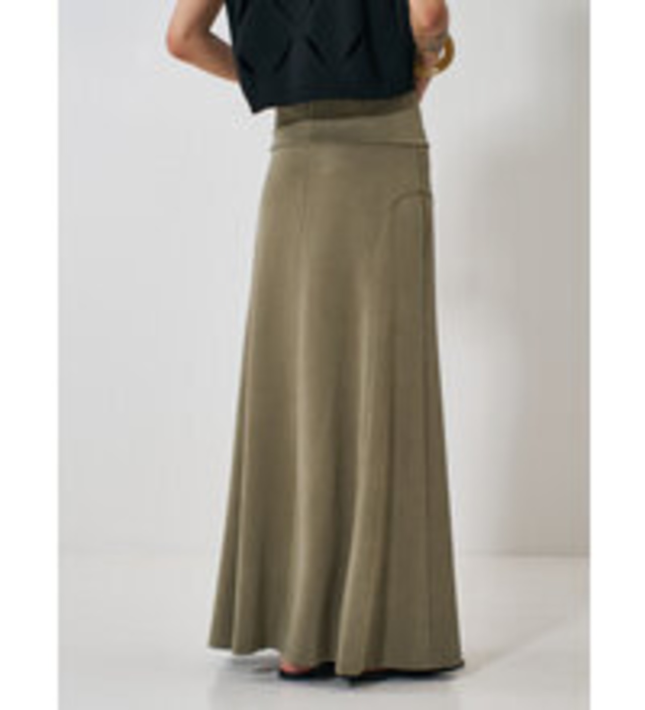 フィブリル加工のダブルジャージー生地を使用したマキシスカートです。
