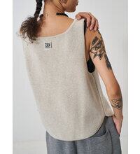 ミドルゲージの綿糸で編み立てたニットベストです。