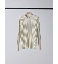 シンプルなスクエア型で、体のラインを拾わない緩さのあるシルエットを採用。リブニットのトップスにありがちなコンパクトなインナーとは対極に、カジュアルなロンTのような立ち位置で着用いただける1枚に仕上げています。弾力のあるさらっとした糸で、春先のまだ寒い時期から活躍するアイテムです。