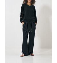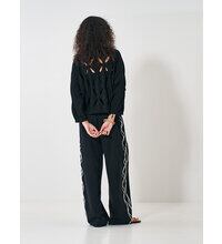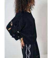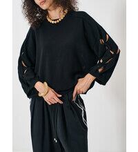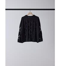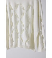 大胆にくり抜いたアイレット柄が特徴のニットトップスです。