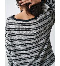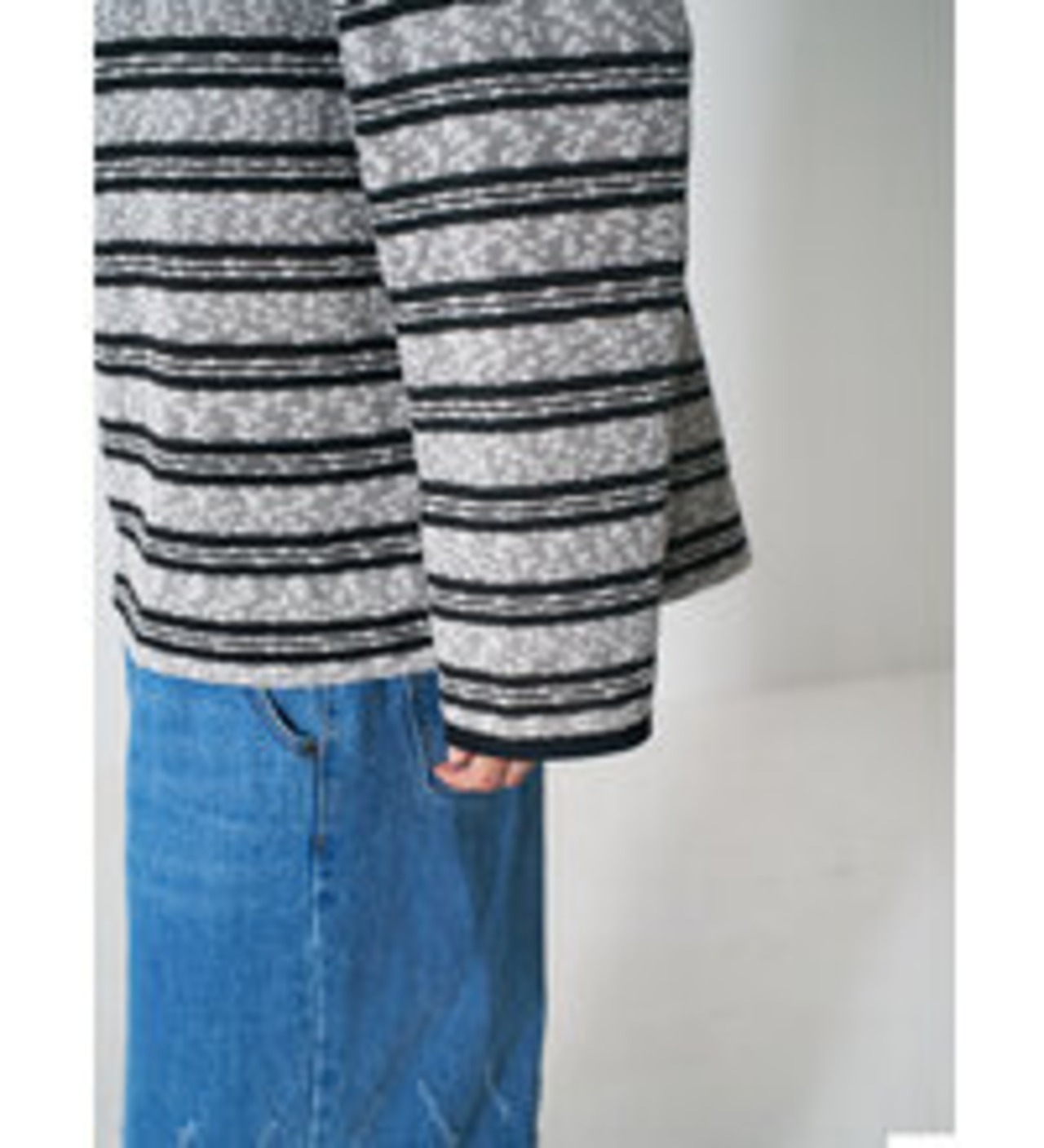 一見、スラブのMIXニットのように見える布帛生地を使用。凹凸のあるスラブ部分とシアー感のある無地部分で作るボーダー柄がユニークな生地で、程よいハリのある肌離れの良い素材を使用しました。