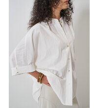 ハリのある素材で作るオーバーサイズのシャツは、体から浮くので風通しが良く、涼しく着用いただけます。
