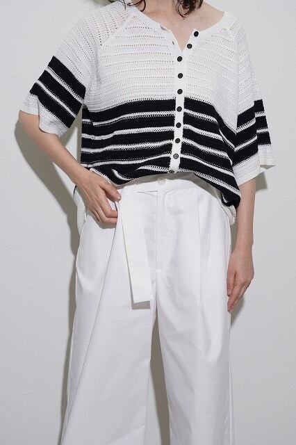【ご予約品】《CYAN》透かしボーダーハーフスリーブカーデ 610422【送料無料】(2上~2中)