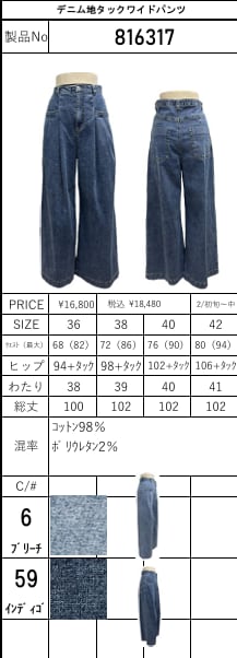 【ご予約品】《ayane》デニム地タックワイドパンツ 816317【送料無料】2月初~中