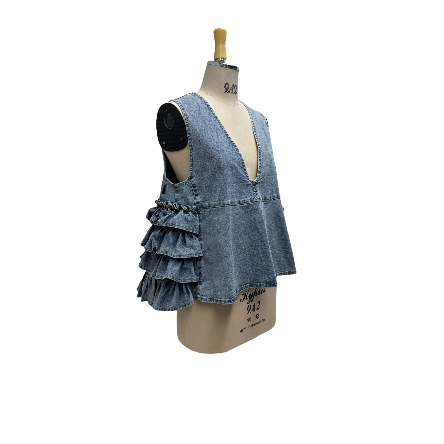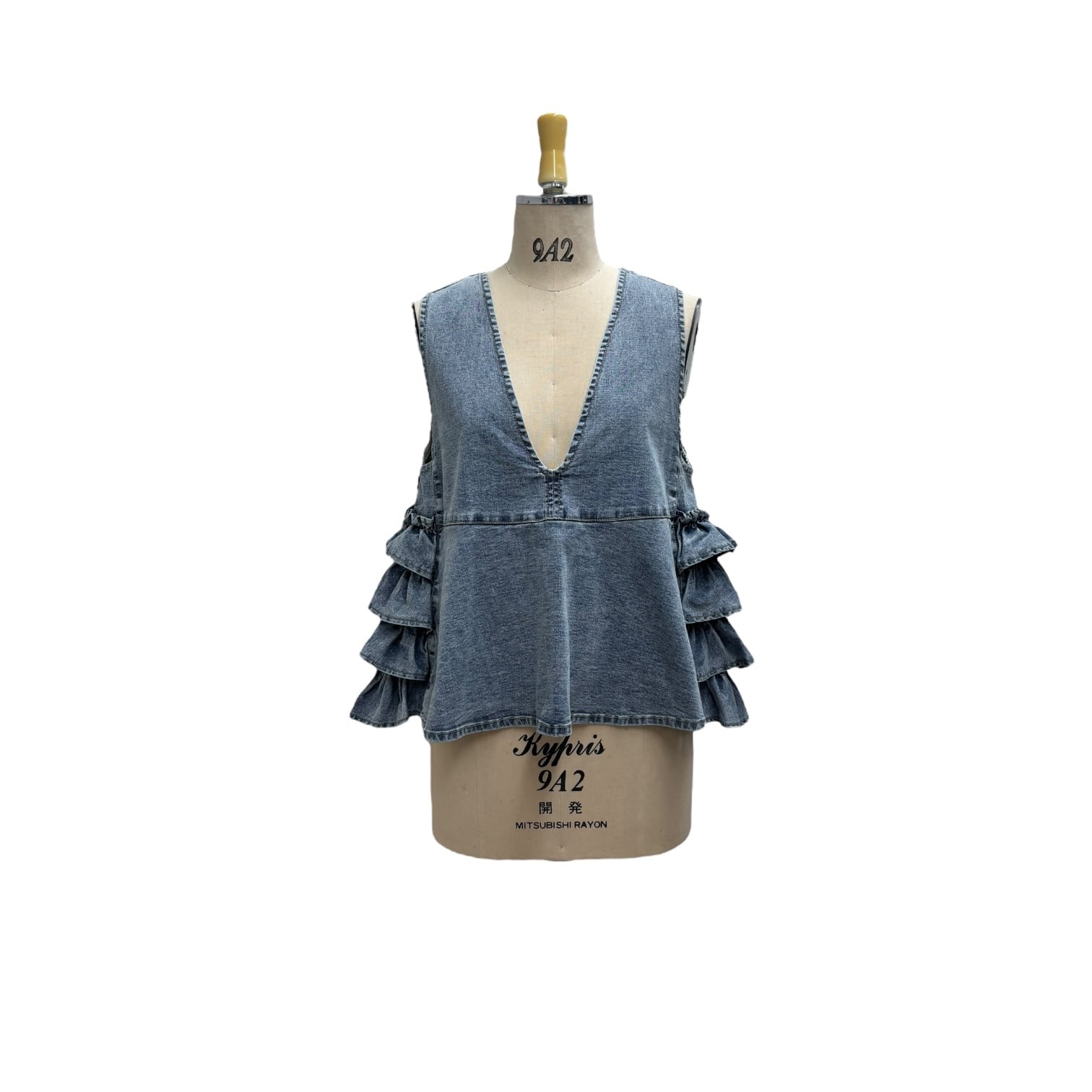 【ご予約品】《ayane》デニム地バックフリルベスト 816315【送料無料】2月初~中
