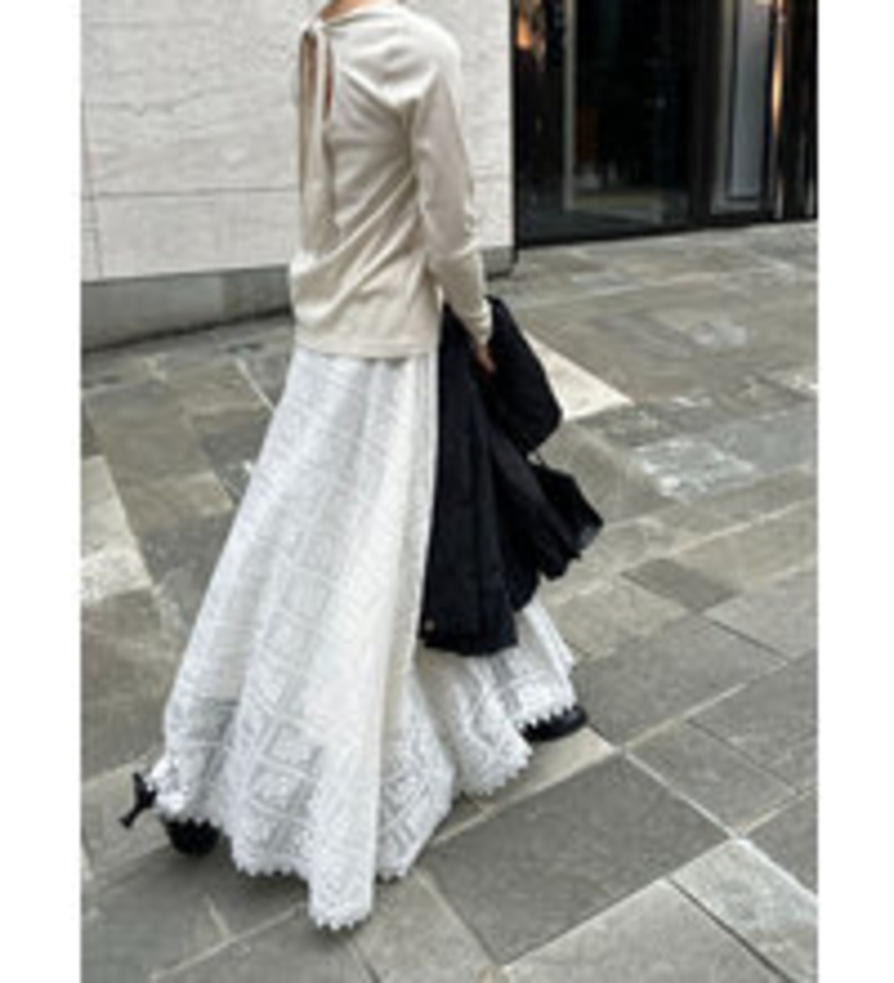 まるで風をまとうように揺れる、贅沢なレースサーキュラースカート。