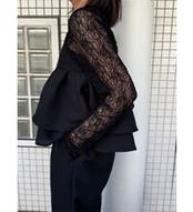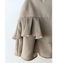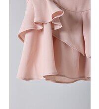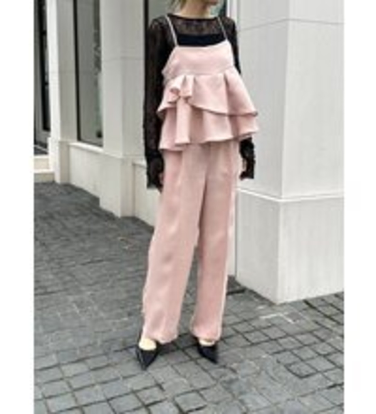 アシンメトリーにデザインされたフリルが、甘すぎず大人なアクセントに。