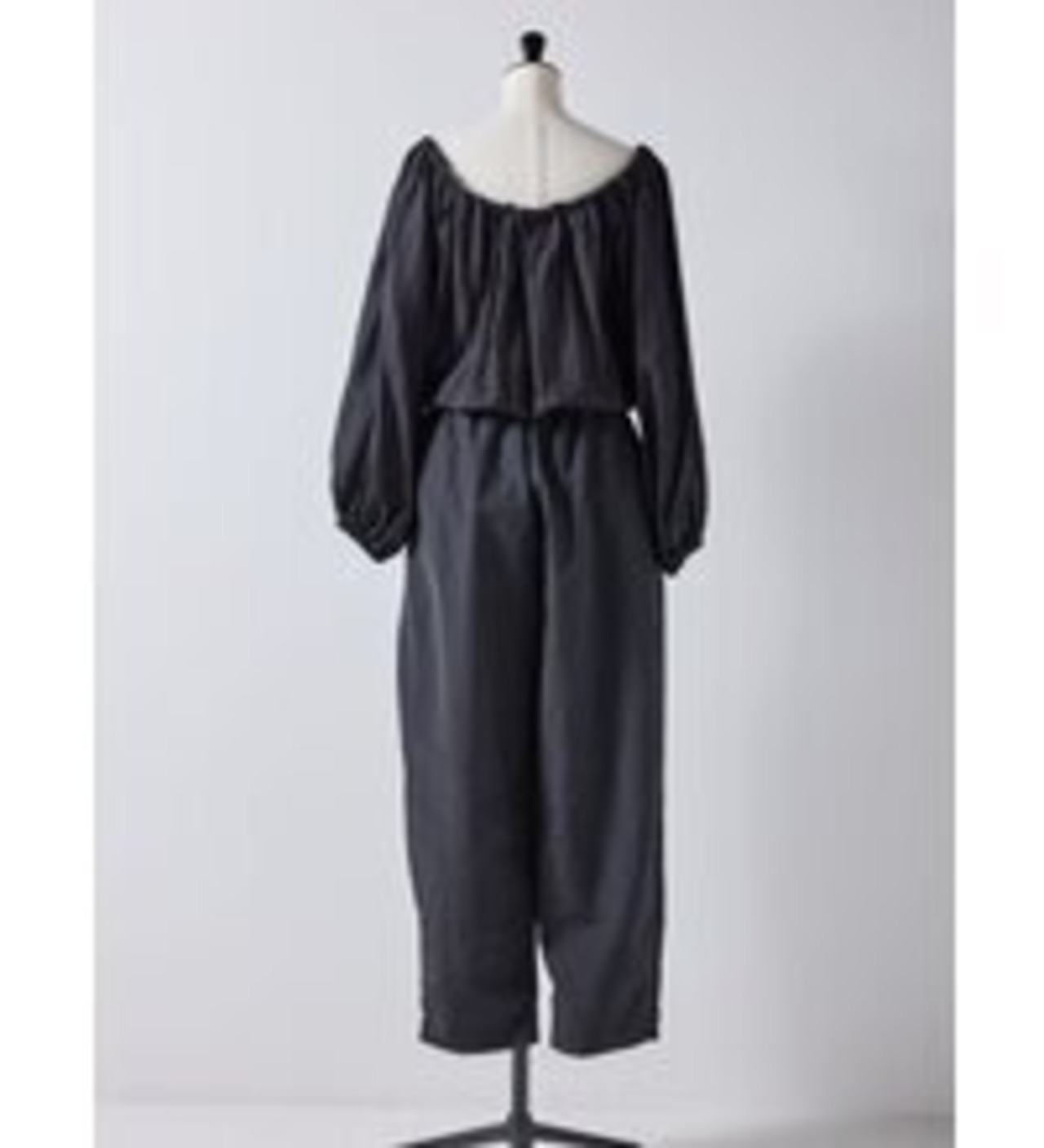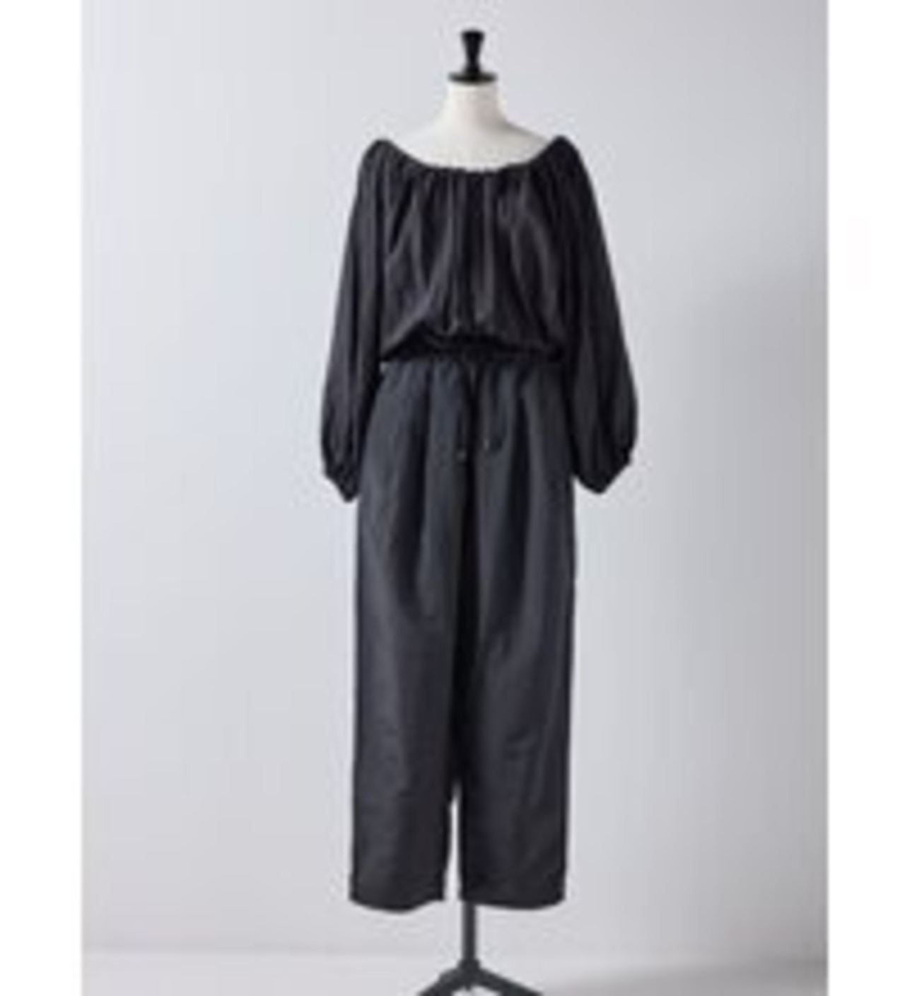 トップスとパンツで異なる素材を組み合わせた、1枚でスタイリングが完成するコンビネゾン。