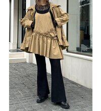軽やかなナイロン素材を贅沢に使用し、裾にはたっぷりとフリルをあしらって大人の可愛さをプラス。