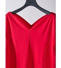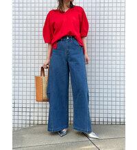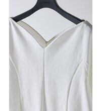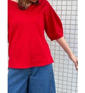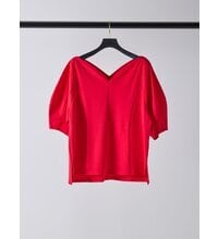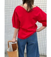 まるでハートを描くようにカーブを描いたネックラインが印象的なポンチ素材のカットソー。