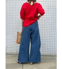 デコルテがきれいに見える開き具合で、同色展開をしているパッド付きキャミをインすれば、抜け感のあるヘルシーな肌見せが完成。