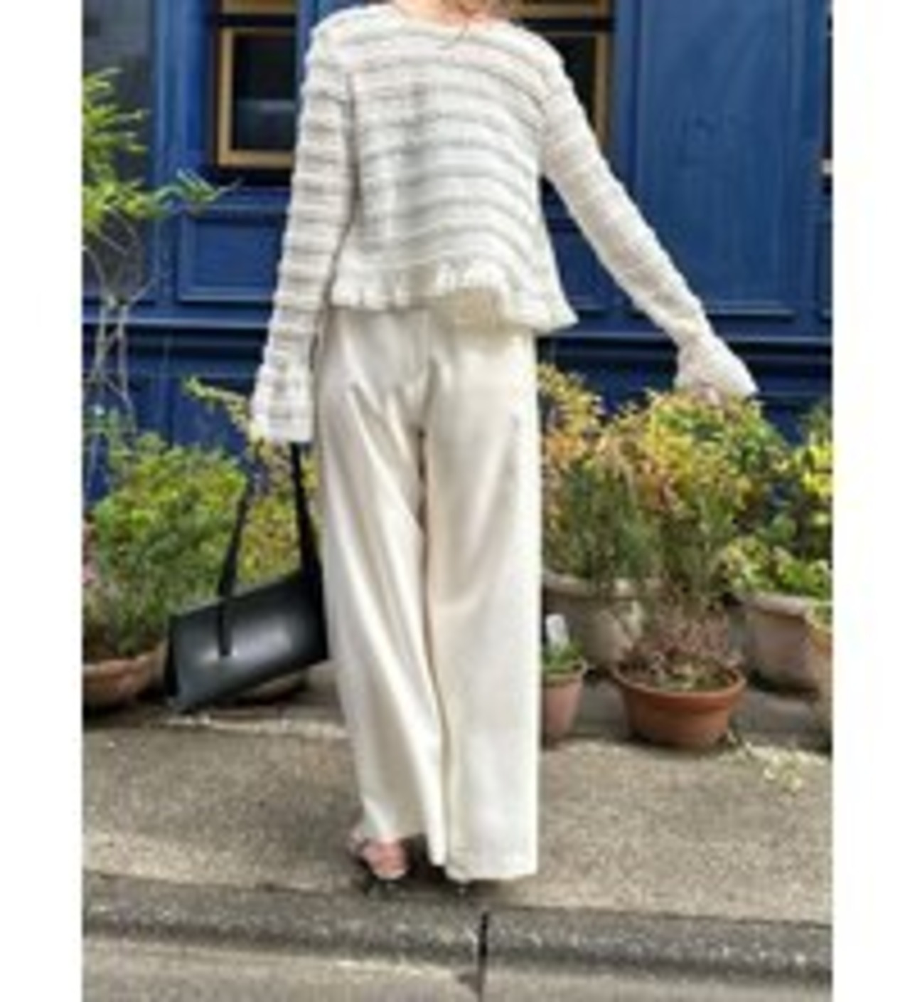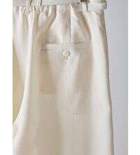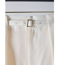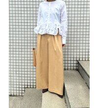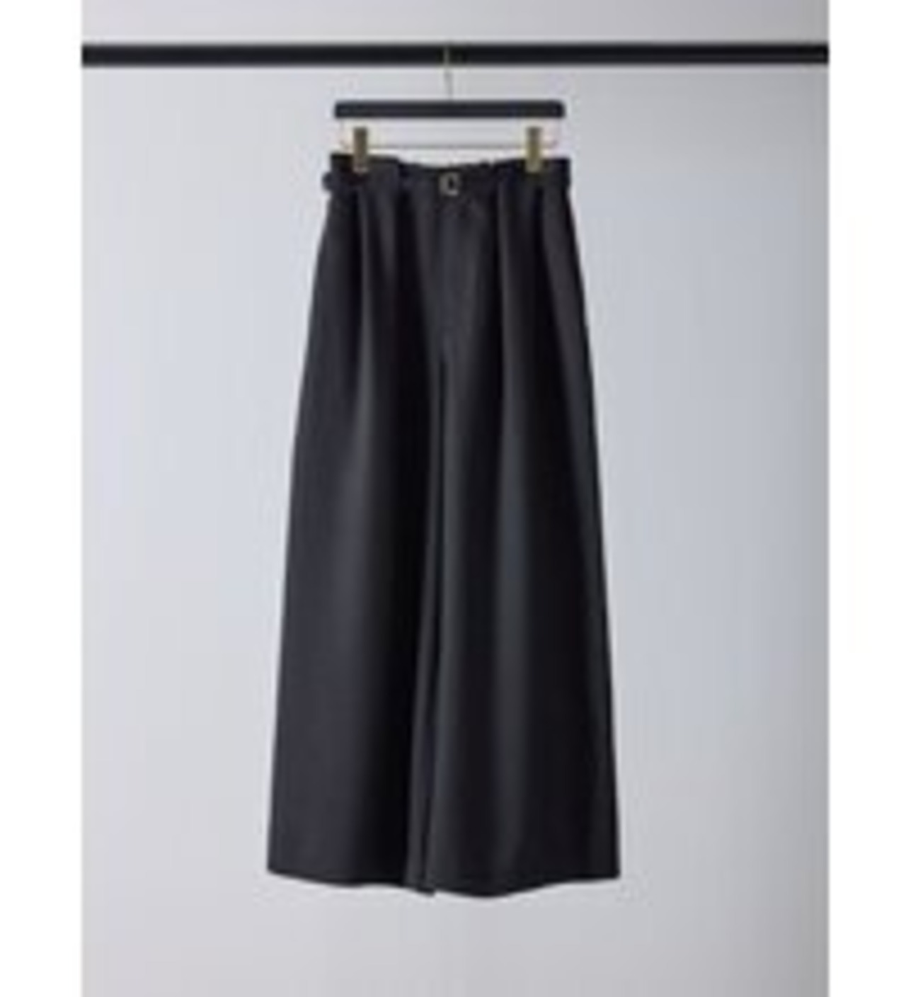 共布ベルトをタック奥に通した立体的なデザインで、シンプルながらも一枚でコーデが決まるワイドパンツ。
